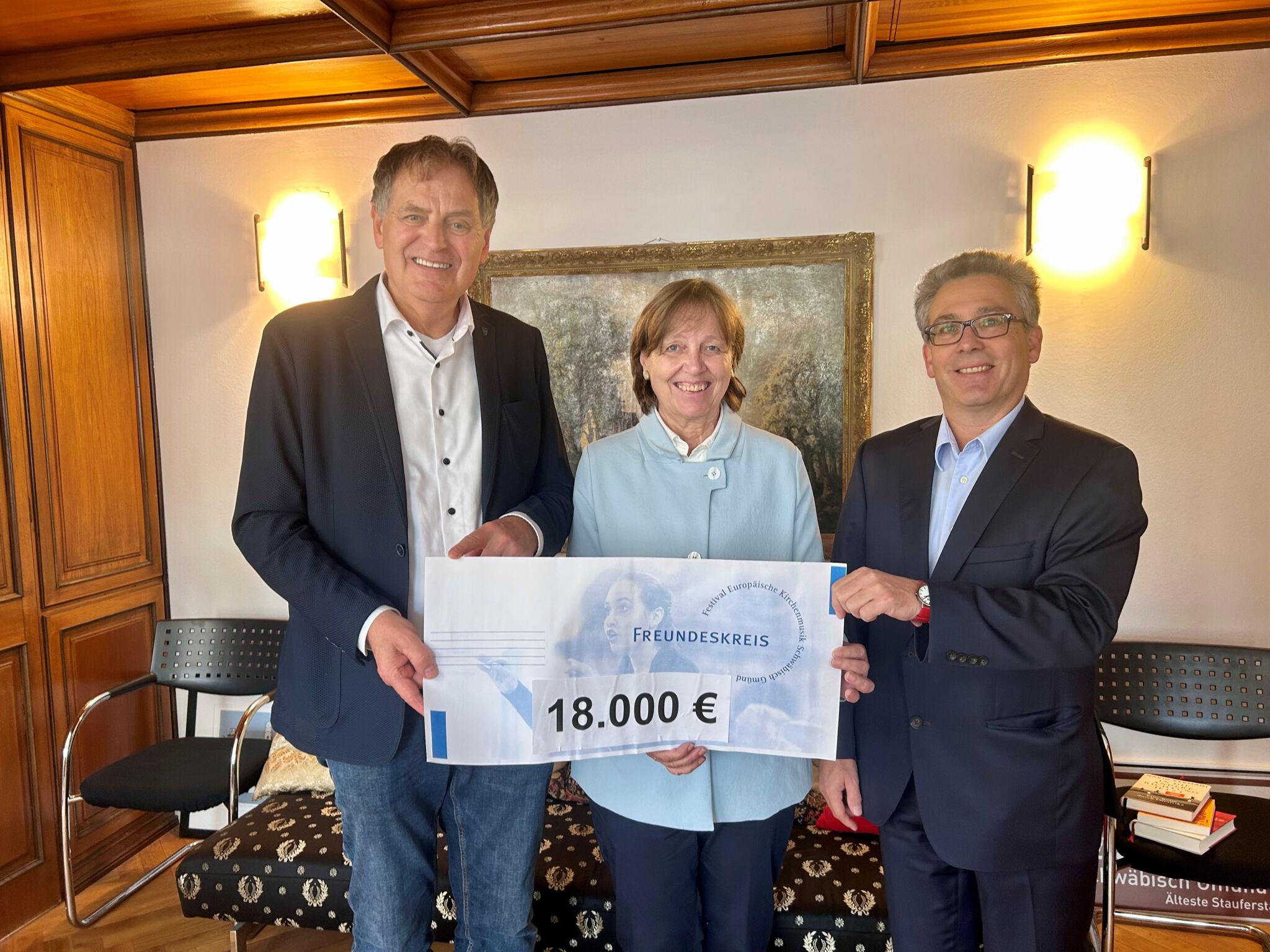 Oberbürgermeister Richard Arnold und Intendant Klaus Stemmler bedankten sich für die großzügige Spende und das große Engagement des Freundeskreises beim Festival und über das ganze Jahr. Alle Beteiligten freuen sich auf die Fortsetzung der guten Zusammenarbeit.